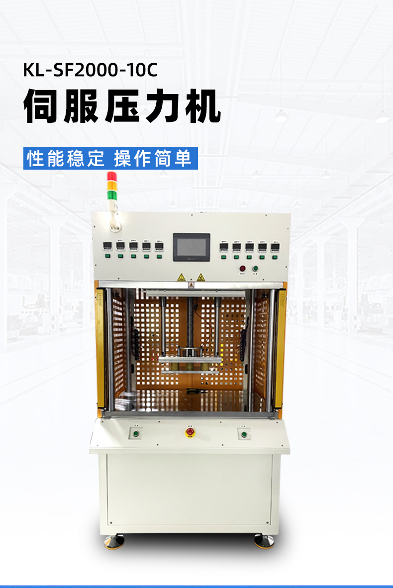 精密數(shù)控伺服電子壓力機(jī)簡稱伺服壓力機(jī)、電子壓力機(jī),其工作原理是由伺服電機(jī)驅(qū)動H精度滾珠絲桿進(jìn)行精密壓力裝配作業(yè),全程實現(xiàn)壓裝力與壓入深度的閉環(huán)控制。另可配置加熱、實時壓力曲線顯示、多工位、掃碼、自動化等功能。