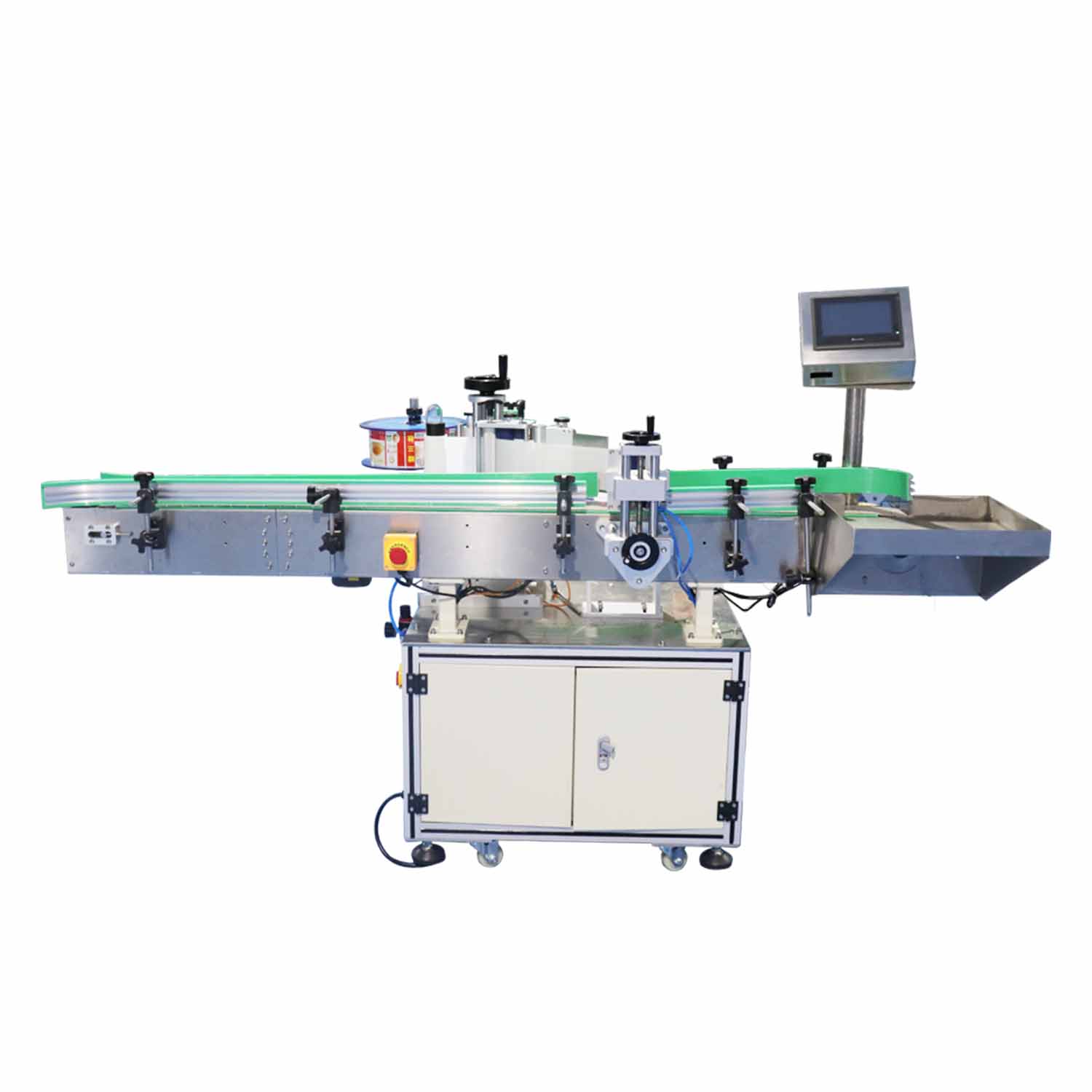 全自動(dòng)圓瓶貼標(biāo)機(jī)適用于在圓瓶類(lèi)物體圓周面貼標(biāo)簽,可貼單標(biāo)和雙標(biāo),正背雙標(biāo)間距可靈活調(diào)整,如啫喱水圓瓶、食品圓罐等貼標(biāo),廣泛應(yīng)用于化妝品、食品、醫(yī)藥、消毒水等行業(yè)。